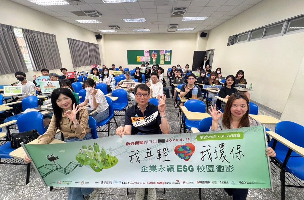 4月18日,我年輕、我環保《企業永續ESG校園徵影》執委前往位於三峽區國立臺北大學向兼任副教授游婷敬所帶領的媒體實作與創意思考課程同學進行活動宣傳,老師擁有豐富的教學經驗,這堂課不僅有法律系、會計系以及財經系的同學參與,更能顯現出媒體實作與創意思考是現今學生具備的能力,在課堂中同學的踴躍表現也看得出學生具有多樣創新思維能力。